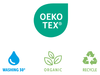 80% cotone organico, 20% poliestere riclicato.