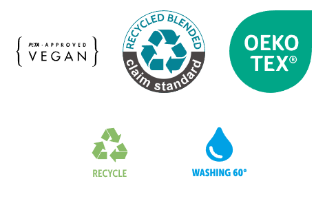 Composizione: 65% di poliestere riciclato Optimium certificato RCS, 35% di cotone better cotton Optimium filato ad anelli.